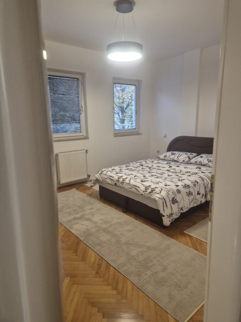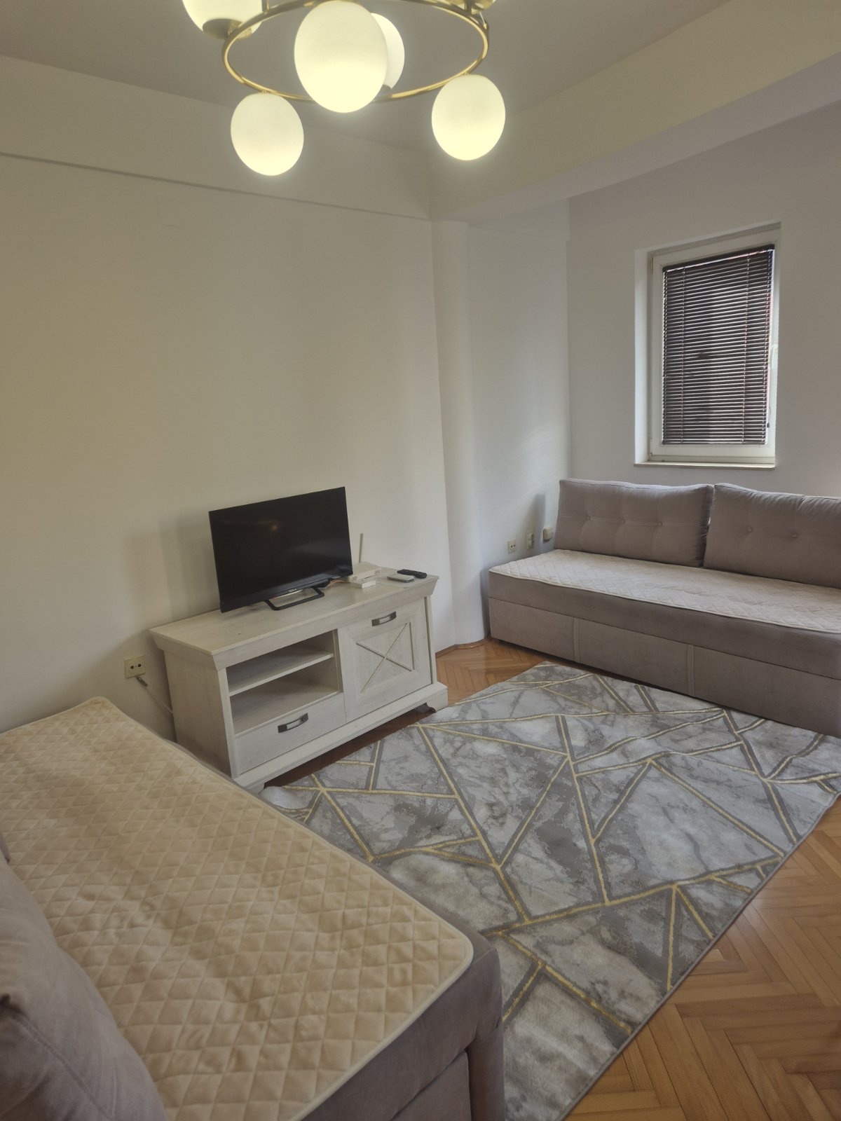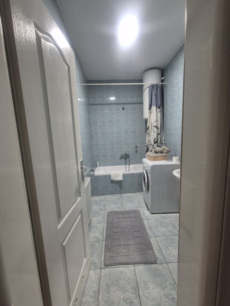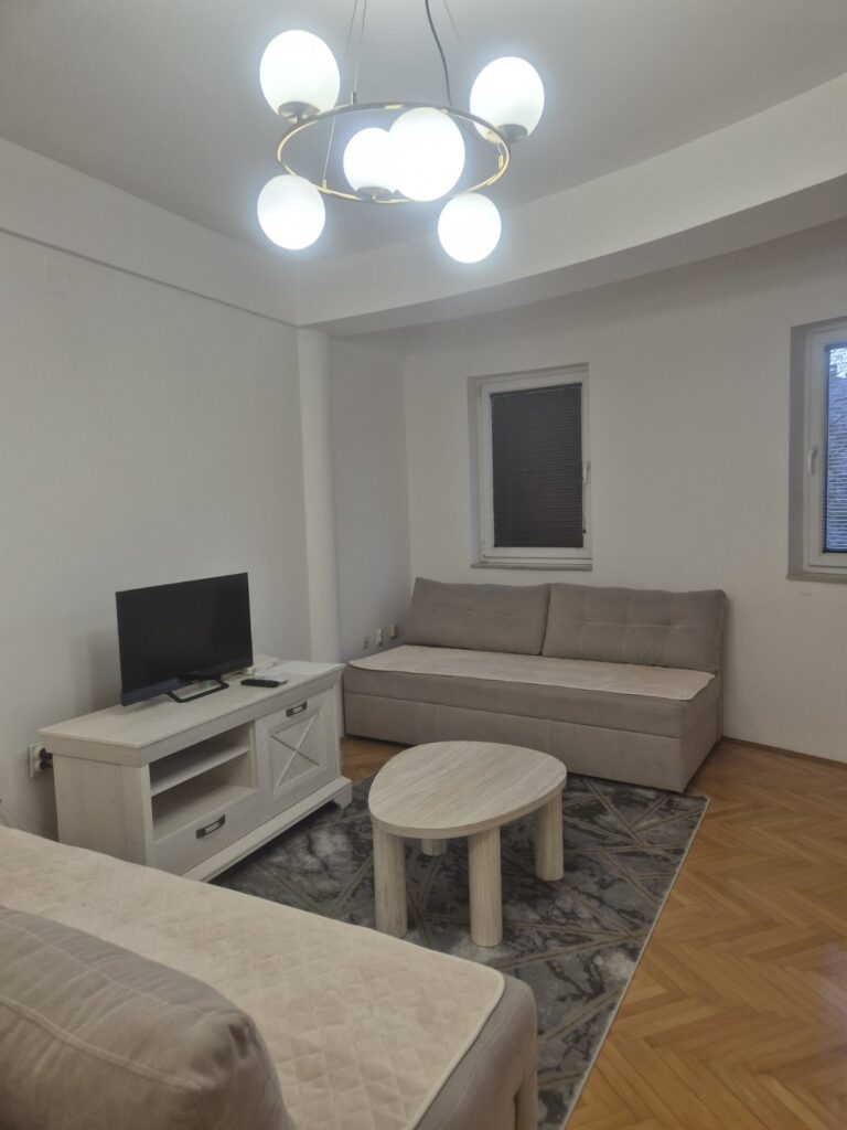 Iznajmljujemo stan u zgradi novije gradnje, potpuno namješten novim namještajem i spreman za useljenje, stan se sastoji od sledećih prostorija, hodnik, kupatilo, dnevni boravak sa kuhinjom i trpezarijom iz kojeg se izlazio na balkon, te spavaće sobe.