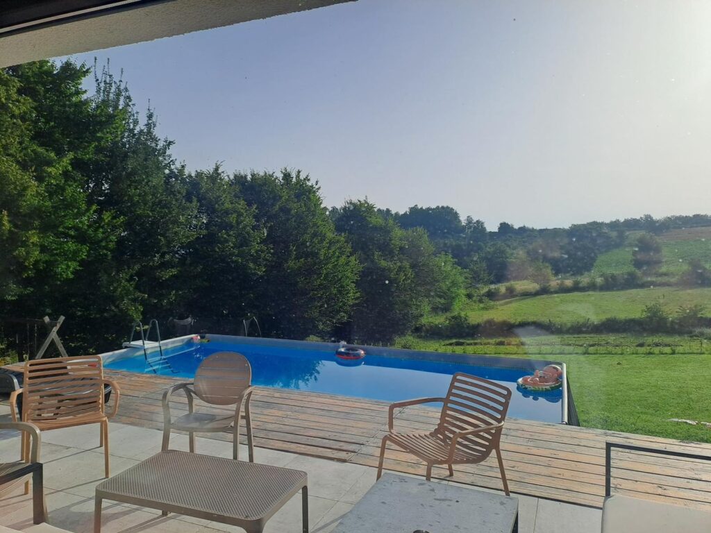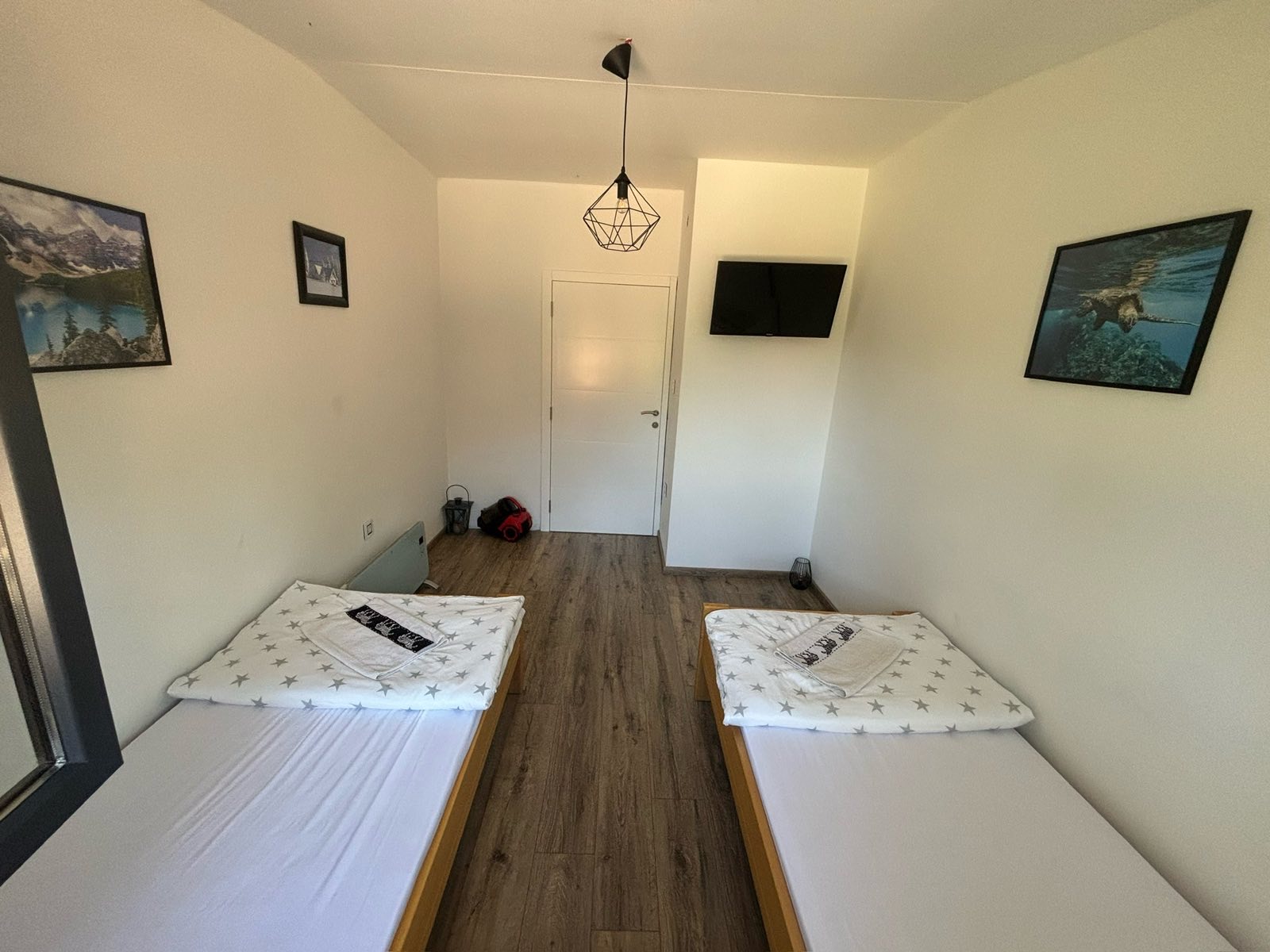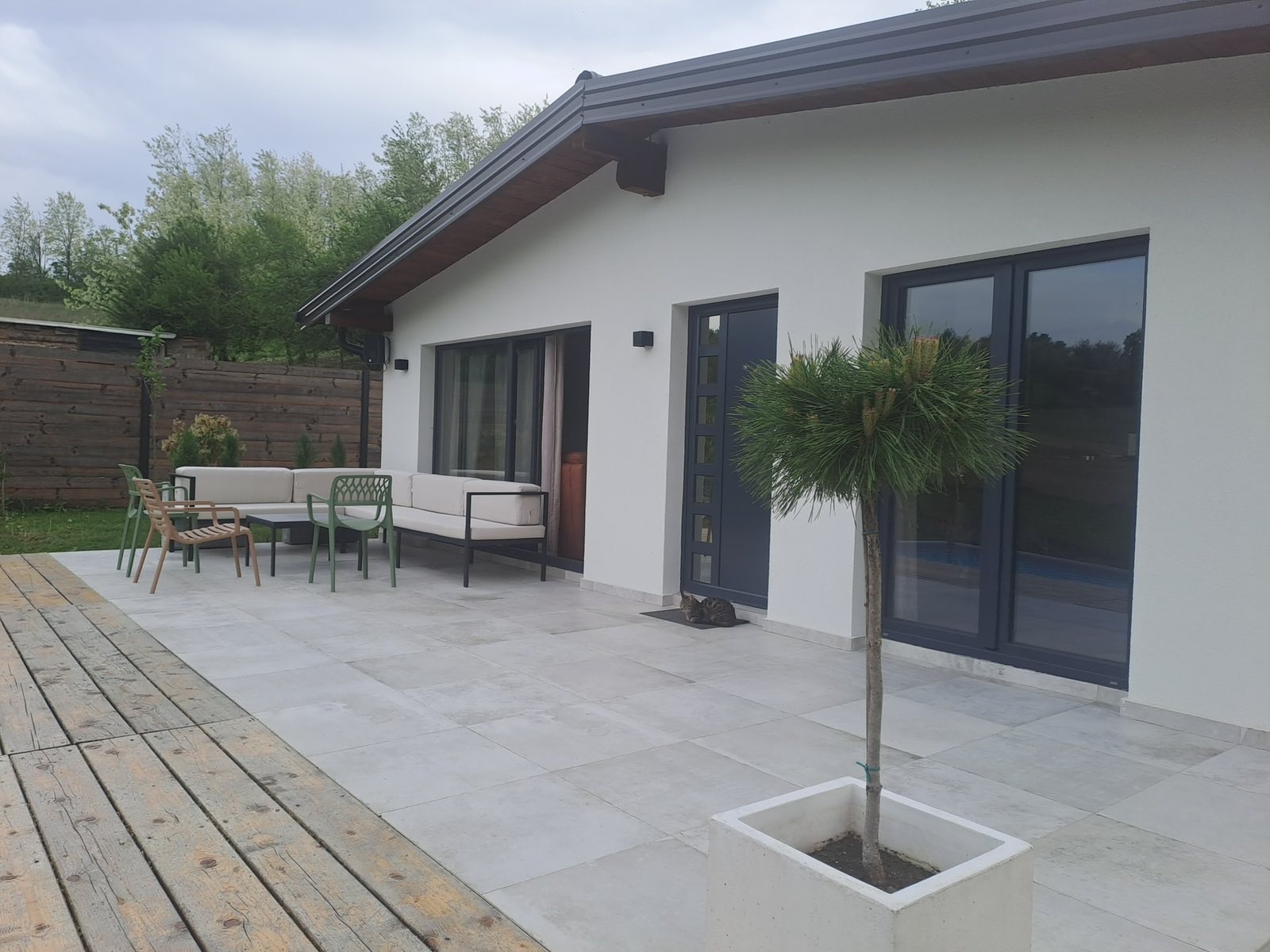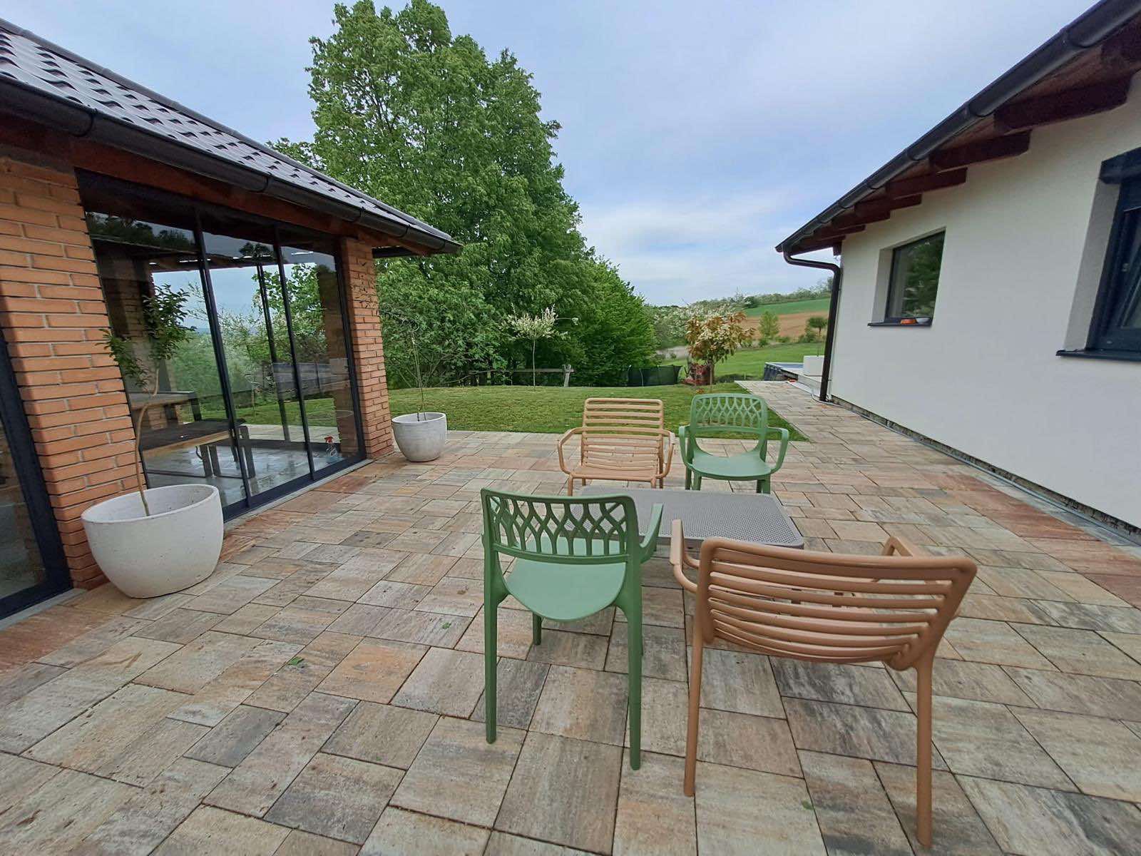 Dvorište je potpuno uređeno, sa montažnim bazenom, dječijim igralištem i prelijepom terasom između vikendice i bazena.