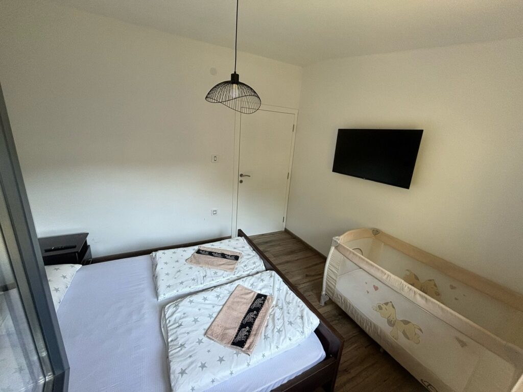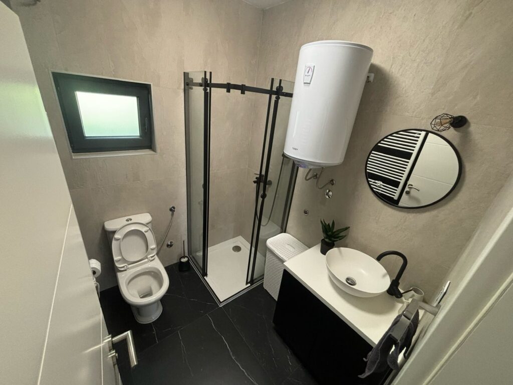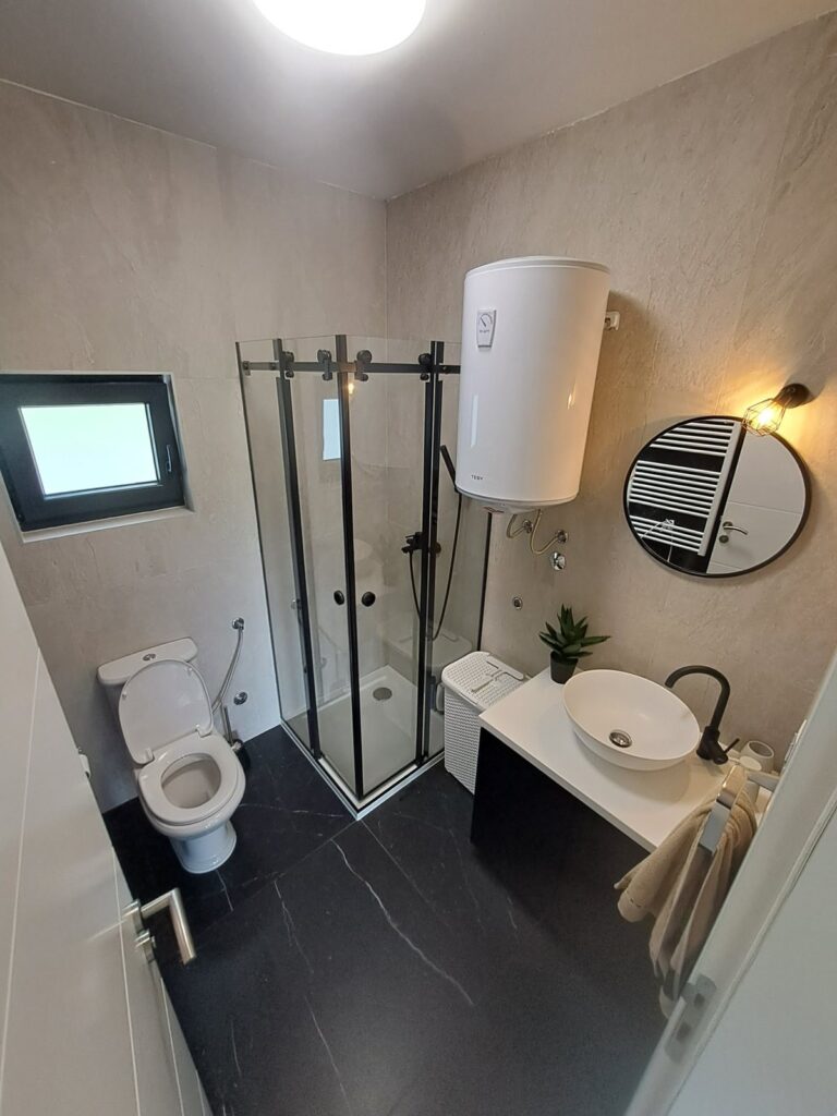 Sve je namješteno kvalitetnim ugradbenim namještajem sa svim neophodnim uređajima te kliamtizovano.